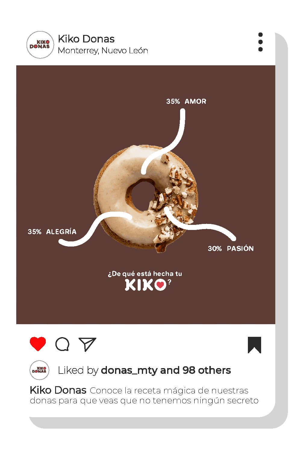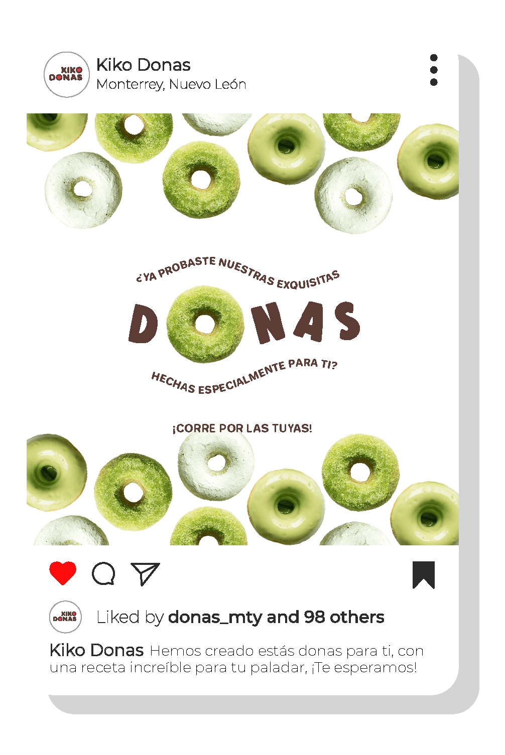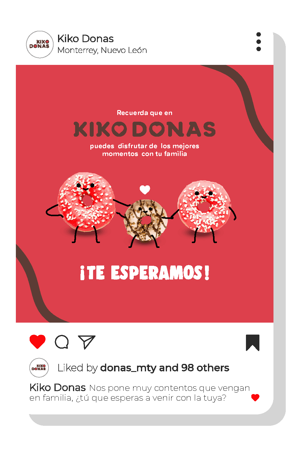KIKO DONAS son las donitas clásicas y originales que todo regiomontano reconoce. Es este nuevo rediseño se mantiene la importancia de la convivencia entre familia y amigos, pues al ser el valor principal de la marca, el público se sentirá identificado. Con un aspecto más moderno, respetando su paleta de colores y los elementos que ya los representan, se le ha dado una nueva imagen dispuesta a saborearla.